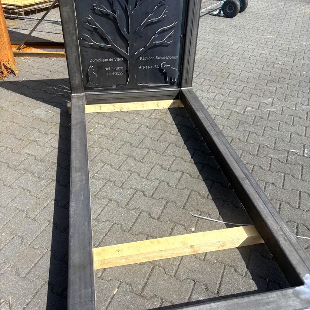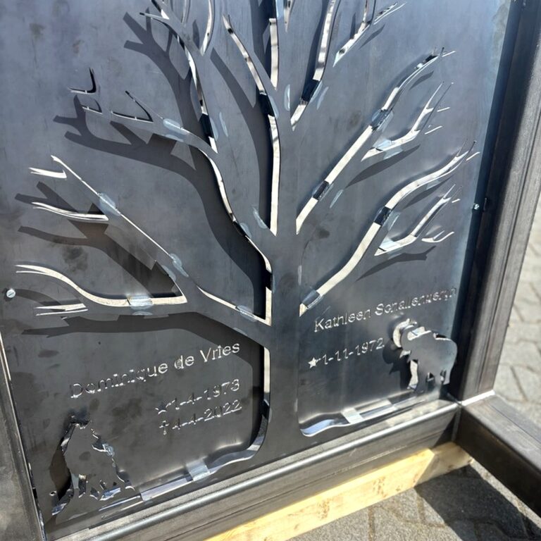 Bij Woods & Steel maken wij grafmonumenten volledig op maat. Elk ontwerp is uniek en ontstaat vanuit een persoonlijk gesprek: wie iemand was, wat belangrijk was, en hoe dit terug mag komen in vorm, symboliek en materiaal. Wij werken voornamelijk met cortenstaal of poedercoating, en hout kan een warme toevoeging zijn.