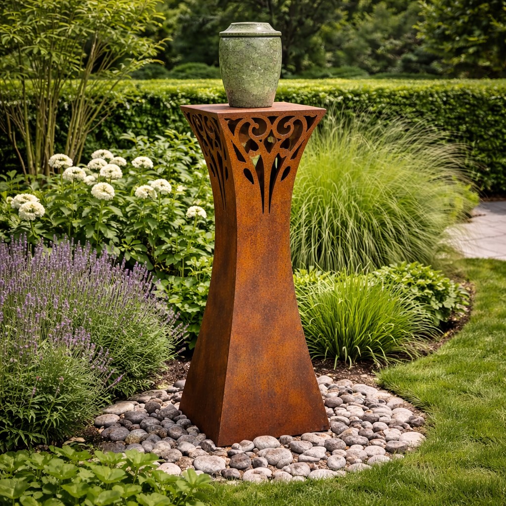 Bij Woods & Steel Memorials maken wij tuinornamenten op maat, die geplaatst kunnen worden als blijvende herinnering in de tuin, bij een herdenkingsplek of als aanvulling onder een urn.